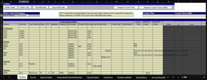 The Excel DDE API has the full functionality offered by the Trader Workstation API implemented via a DDE socket bridge that uses the open source Java – DDE interoperability library JDDE. This means the DDE API offering is built utilizing both Java and VB together in order to create a complete Excel offering to the standard put in place by Microsoft.